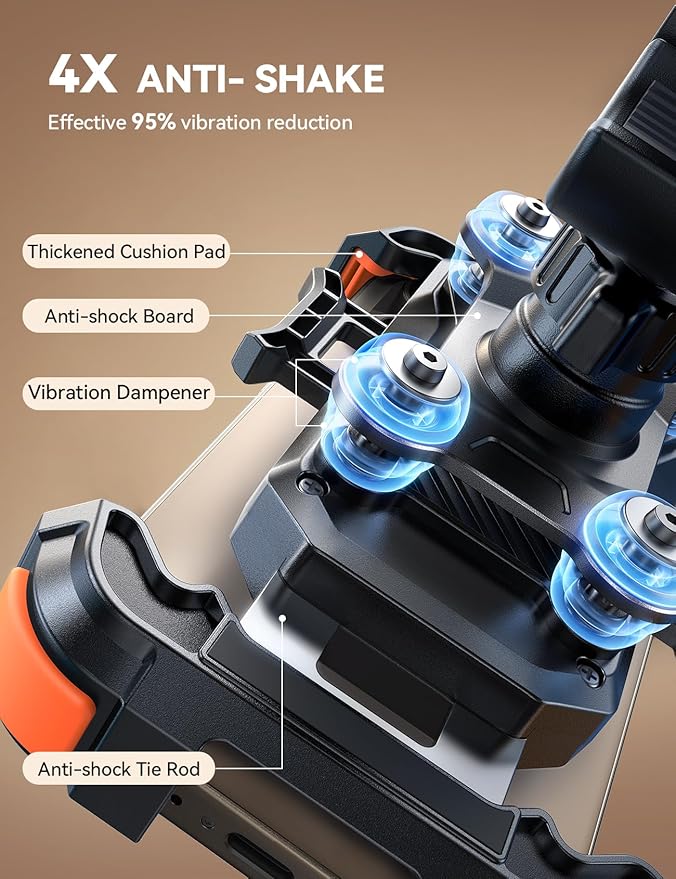 - [Sturdy All Metal Tie Rod ] - The anti- vibration phone mount for motorcycle has been upgraded with all metal pull rods and all metal core ball heads in 2025, effectively solving the plastic handlebar clamps problem of breakage. After more than 5000 safety tests, the motorcycle phone holder clip is super stable and not easily broken or misaligned