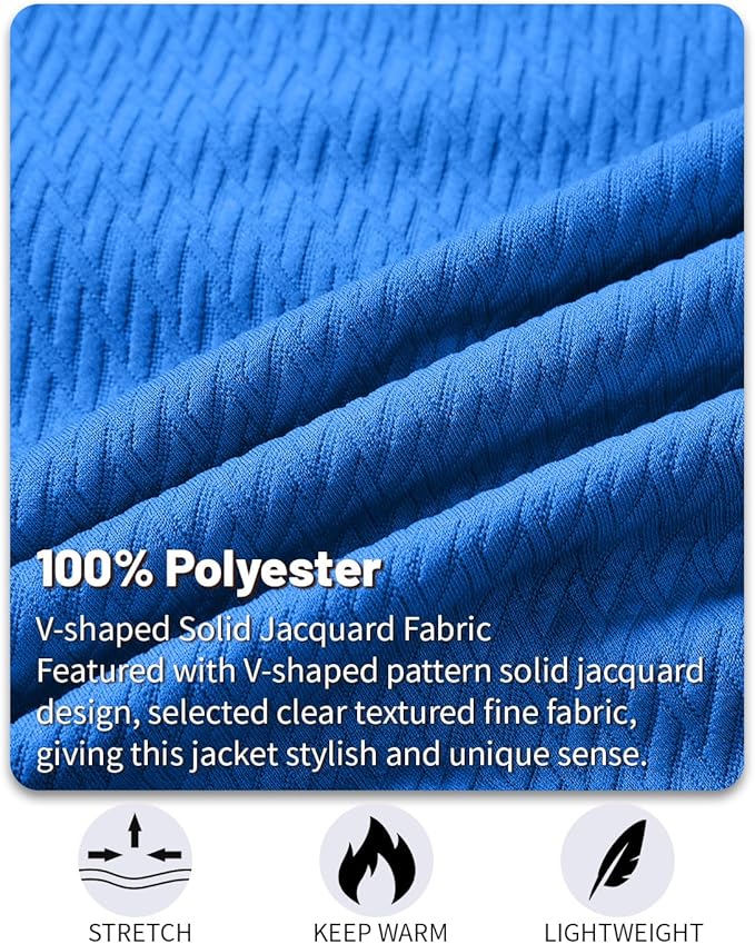 • 【STYLISH DESIGN】: Mens Casual Jacket designed with a full zip, ribbed hem and cuffs, left arm with decorative zipper and 2 side pockets on the front. Featured with V-shaped pattern solid jacquard design, selected clear textured fine fabric, giving this jacket stylish and unique sense.