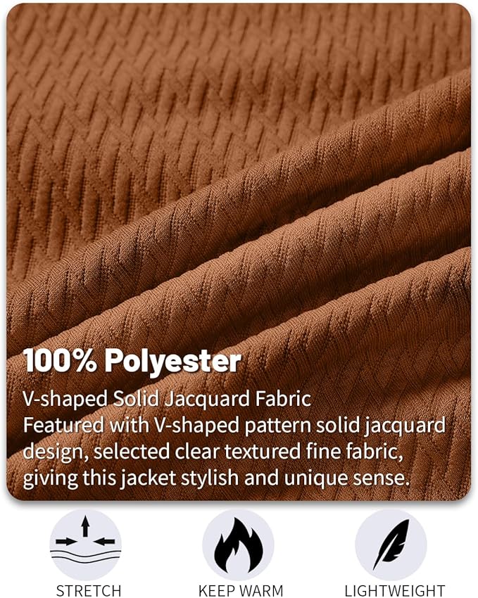 - 【STYLISH DESIGN】: Mens Casual Jacket designed with a full zip, ribbed hem and cuffs, left arm with decorative zipper and 2 side pockets on the front. Featured with V-shaped pattern solid jacquard design, selected clear textured fine fabric, giving this jacket stylish and unique sense.