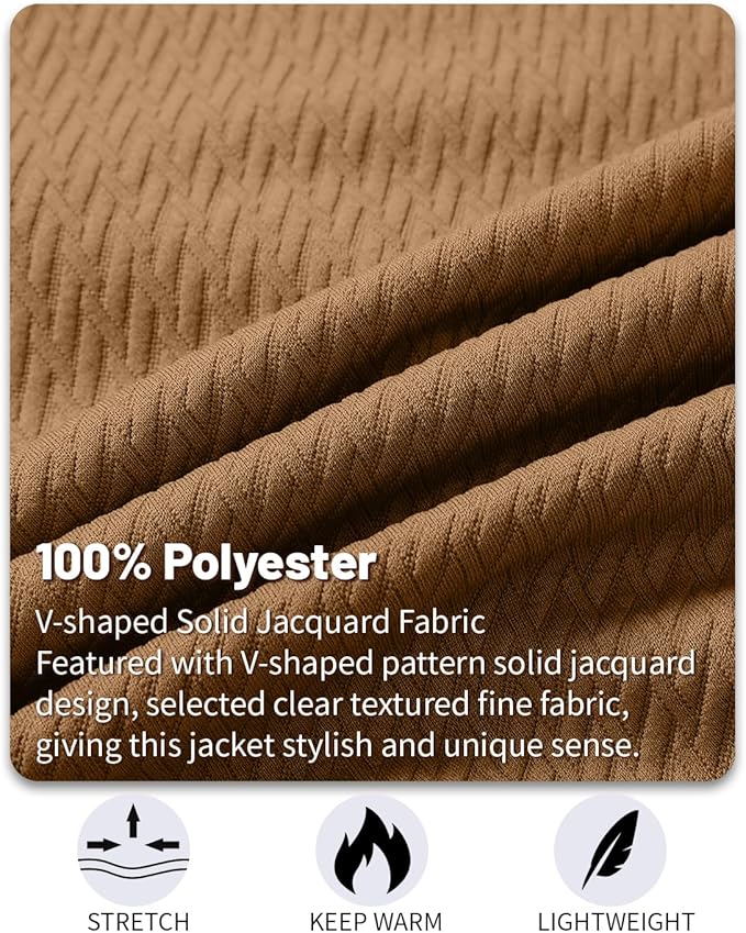 - 【STYLISH DESIGN】: Mens Casual Jacket designed with a full zip, ribbed hem and cuffs, left arm with decorative zipper and 2 side pockets on the front. Featured with V-shaped pattern solid jacquard design, selected clear textured fine fabric, giving this jacket stylish and unique sense.