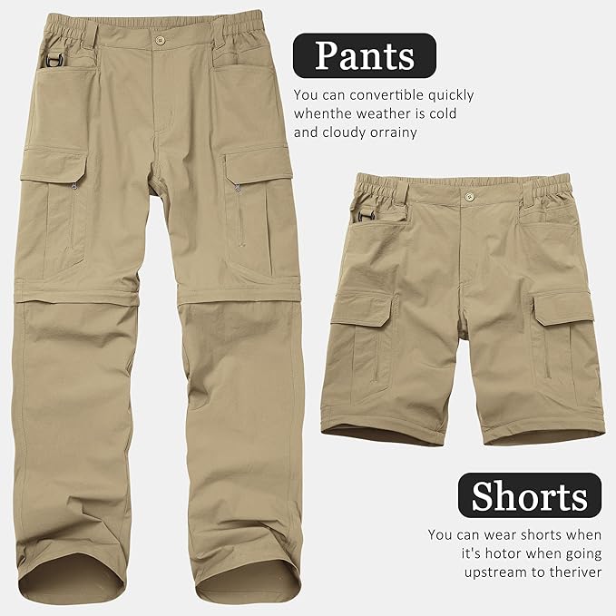 Mens Hiking Pants Convertible Lightweight Quick Dry Zip Off Waterproof Outdoor Travel Fishing Hunting Pants