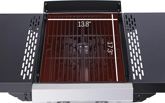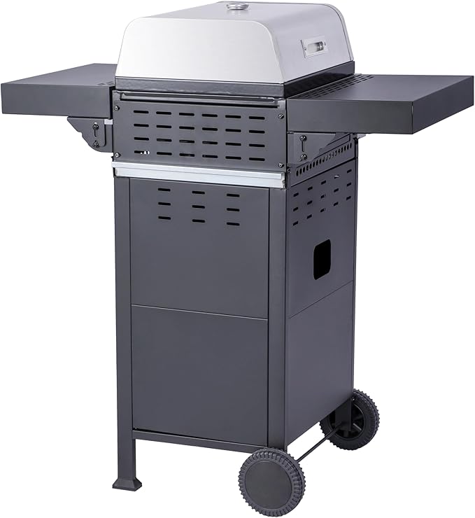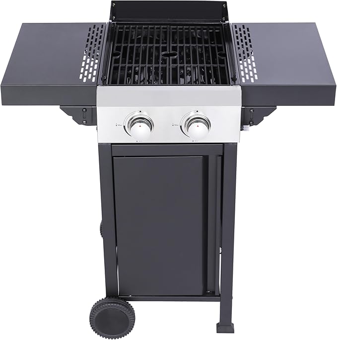 2-Burner Propane Gas BBQ Grill, Pizza Box, 24600BTU Output With Wire Enamel Cooking Grids For Outdoor Barbecue, Foldable Side Table, Hanging Basket, Stainless Steel
