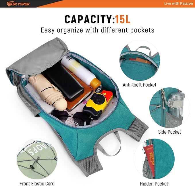 - High-quality & Ultra-light: Weight only 0.66LB, this small hiking backpack constructed with high-quality, water-resistant nylon fabric, keeping your belongings safe and dry whether you're hiking, traveling, or commuting. This foldable hiking backpack is lightweight but long-lasting.