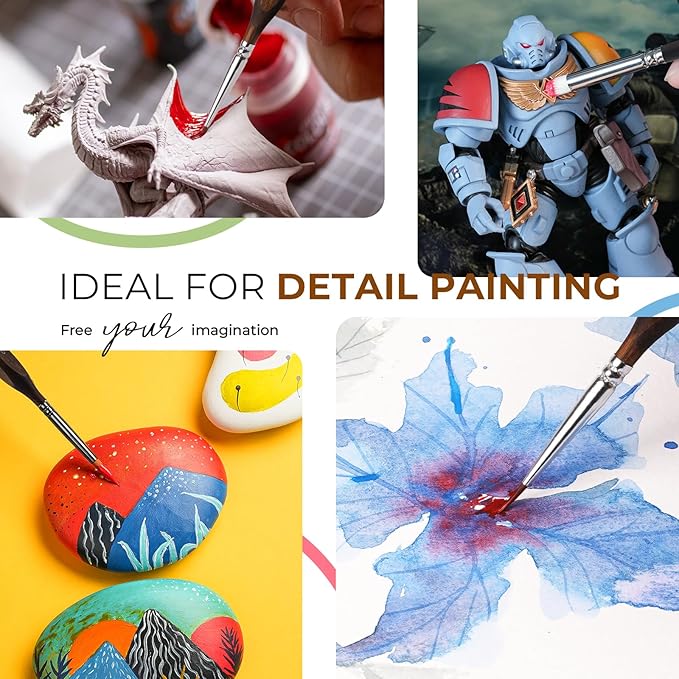 - 【For Miniatures, Models & Fine Art】Suitable for acrylics, oils, watercolors and gouache. Perfect for fantasy and sci-fi miniatures, scale models, crafts, ceramics and detailed illustrations—a professional miniature paint brush set for beginners, hobby painters and experienced artists alike.