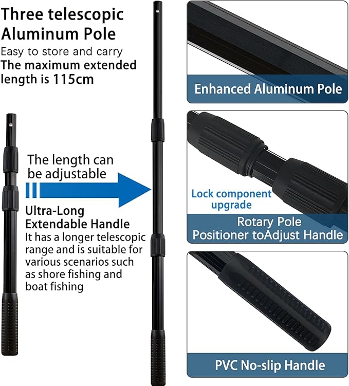 - 4. USER-FRIENDLY FEATURES The Fishing Net Comes With User-friendly Features. The Telescoping Handle Is Easy To Adjust, And The Net Is Foldable And Detachable For Convenient Storage. This Net Adds A Touch Of Style To Your Fishing Gear. Whether You're A Beginner Or Experienced Angler, This Net Is Tailored To Meet Your Needs. Simplify Your Fishing Adventures.