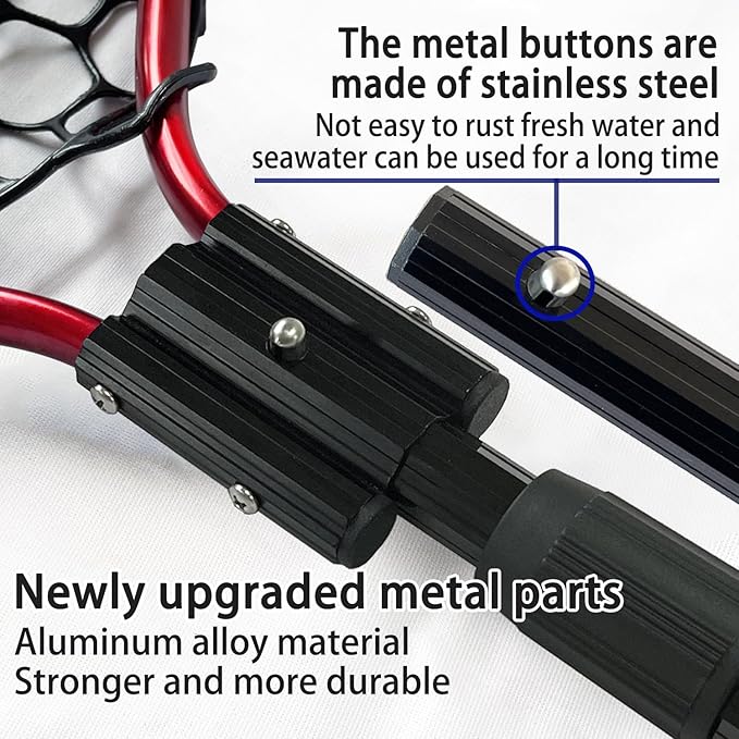 - 2. DURABLE AND STURDY CONSTRUCTION The Fishing Net Is Crafted With Durability In Mind. Made From High-quality 6061 Oxidized Aluminum Alloy, It Is Lightweight Yet Strong. The Frame Can Withstand Heavy Use And Is Resistant To Corrosion. The net head connects to the handle with a metal connector, which replaces a plastic component in earlier designs. This update improves the overall durability of the product.
