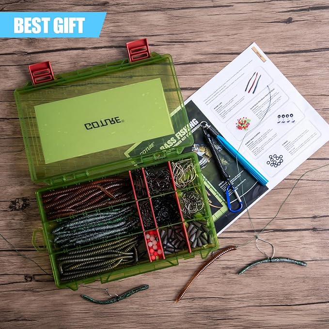 Goture 353PCS Wacky Worm Fishing Lure Kit, Bass Fishing Wacky Rig Tool Kit with Soft Plastics Lures, O-Rings, Offset Worm Hooks, Drop Shot Hooks, Beads, Sinker Weights, 3600 Tackle Box, Gifts of Men
