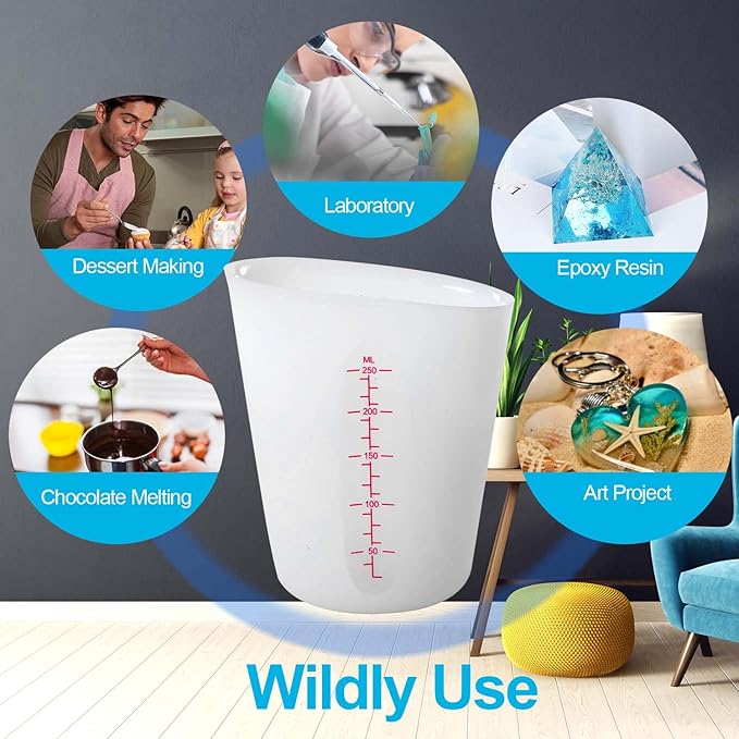 - [Large Capacity] 1pcs of 16oz/500ml silicone measuring cup, 1pcs 8oz/250ml silicone mixing cups, perfect for resin and arts and crafts projects.