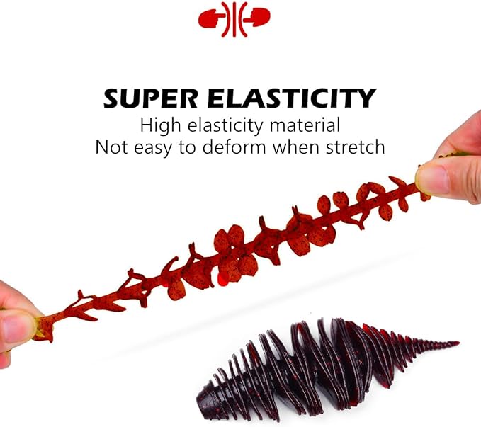 - Unique Ribbing Design: The soft plastic fishing lures with ribbed body from head to tail to create mouthwatering action. These ribs in shape that's the key it gives lots of action. The design has great traction, the durability of soft plastic move more water and create more waves from water displacement, to make more action underwater and invite to nearby fish.