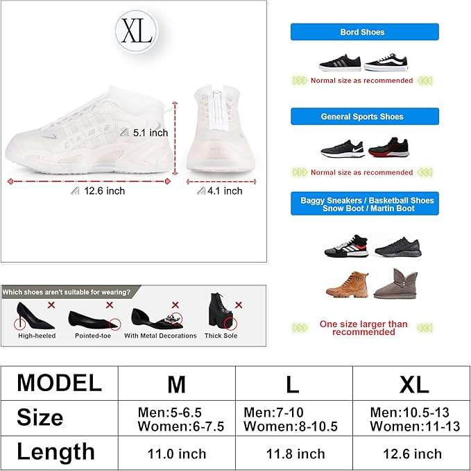 Waterproof Shoe Covers Slip-Resistant Overshoes Newly Upgraded and Latest Model for Men Women, Reusable Rain Boots for Outdoor, Cycling, Hiking, Work (Transparent, XL (Women 11-13, Men 10.5-13))