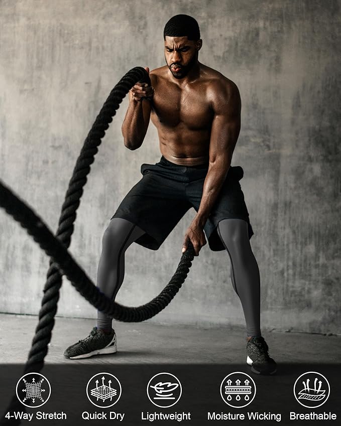 - Compression Support: Engineered for muscle performance, our men’s compression pants deliver targeted support to hips, thighs, and calves; The snug fit helps reduce muscle vibration, enhance power output, and improve your athletic performance