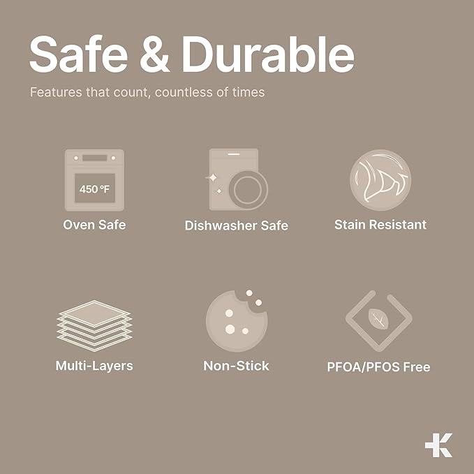 - DURABLE CONSTRUCTION – Built using lead-free reinforced aluminum with embossed plaid pattern for more non stick capabilities & even heat distribution. It can withstand temperatures for up to 392°F/200°C for the bakewares & 475°F/246°C for the cookwares.