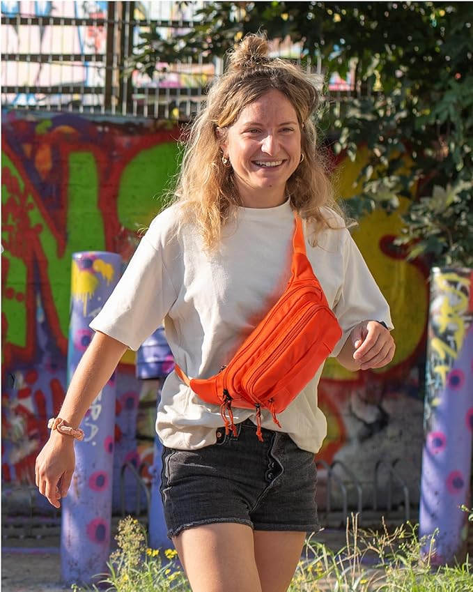 WATERFLY Fanny Pack Waist Packs: Large Crossbody Fanny Packs for Women Men with 5 Zipper Pockets Adjustable Strap Waist Bags Hip Pack for Traveling Cycling Running Hiking-Orange