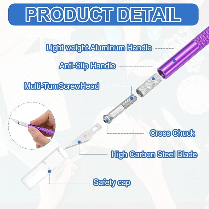 - Each craft knife comes with a safety cap to prevent cuts and is convenient for carrying. Whether you are engaged in art creation, crafting, scrapbooking, or any other crafting hobby, this craft knife set offers versatility to help you turn your creative ideas into reality.