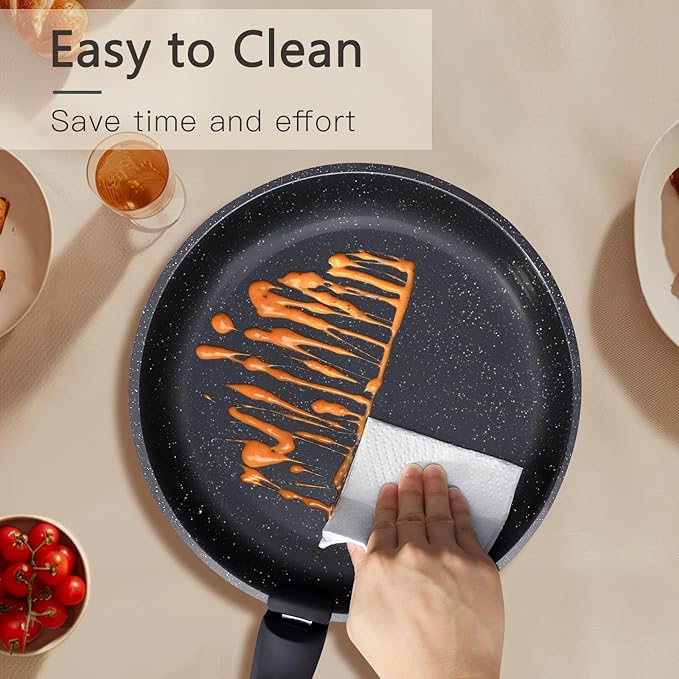 - Healthy Ceramic Coating - Made with 100% non-toxic ceramic nonstick coating, free from PFOA, PFAS, PTFE, lead, and cadmium. Enjoy healthier cooking with ceramic pots and pans set