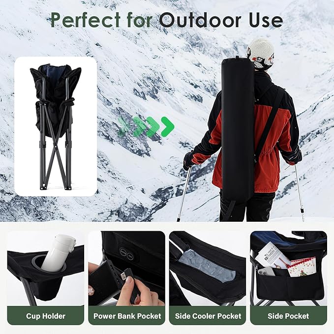- 3 Temperature Settings: Our camping chairs desiged with 3 heating modes (104°F/113°F/131°F) to meet your needs. Compatible with any USB battery pack. Note: Batteries are not included