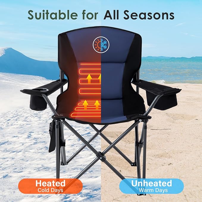 - Quick Heating: Homcosan heated chair adopts upgrade bending-resistant heating material, which is fast heating, more safe and stable. This camping chair is an essential accessories for your outdoor use