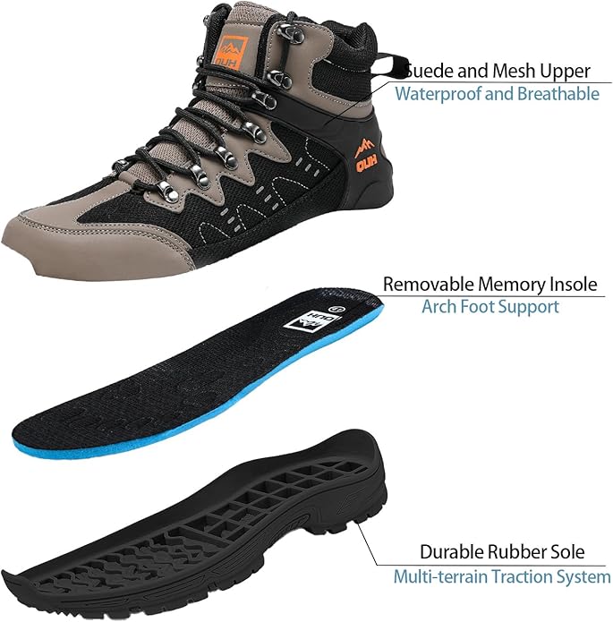 - ✅ Exterior Design: This men's outdoor shoe is made of faux leather and knitted breathable fabric with reinforced stitching for durability and stylish appearance.