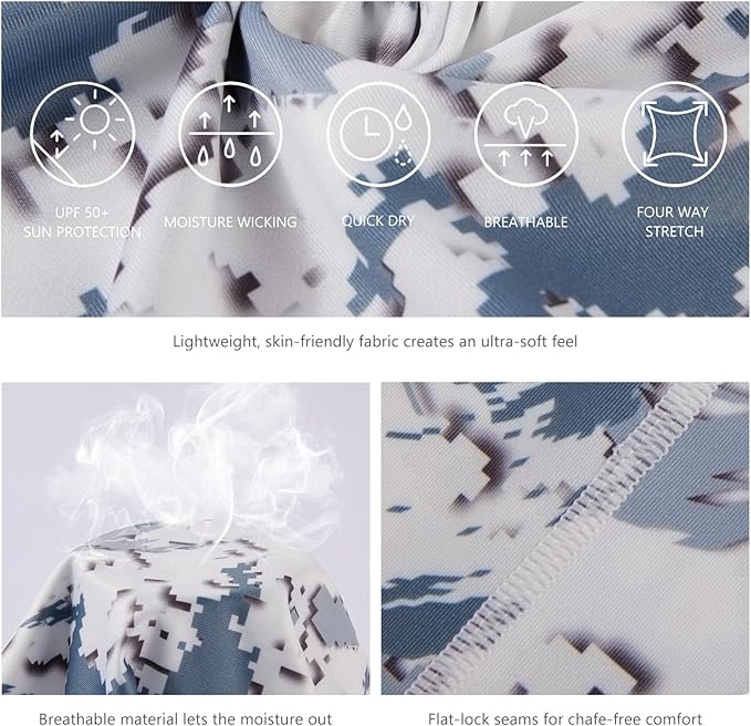 - Fabric type : UPF50+ UV Sun protection 90% Polyester, 10% Spandex; Fabric and dye are toxic free