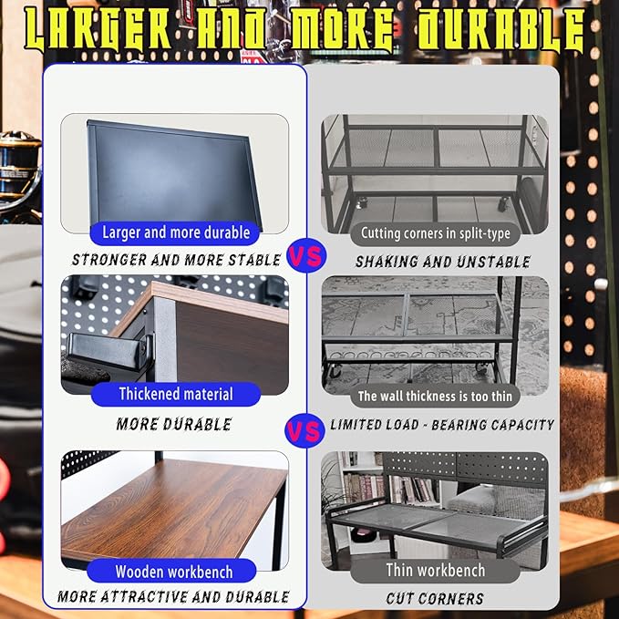 - 4. Roll It, Lock It, Love It Tired of hauling gear like you're moving house? Just roll it. 360° silent wheels let you glide your setup to the garage door—or lakeside. Two lockable casters keep it from sneaking off in the wind. Great for switching stations during big tackle reorganizations. Mobility meets stability with 4 smooth-rolling casters, 2 with brakes.
