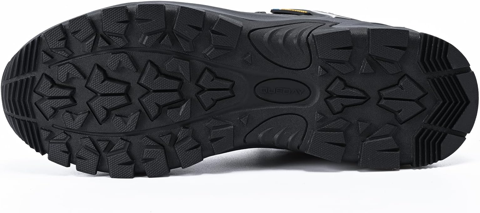 - Durable Rubber Sole: Featuring a tough rubber outsole with an anti-slip design, these men’s hiking shoes provide exceptional grip and durability. The EVA midsole provides shock-resistance, reduce the weight and foot fatigue. Whether you're navigating rocky trails or uneven urban streets, these hiking shoes offer maximum stability and traction with every step.
