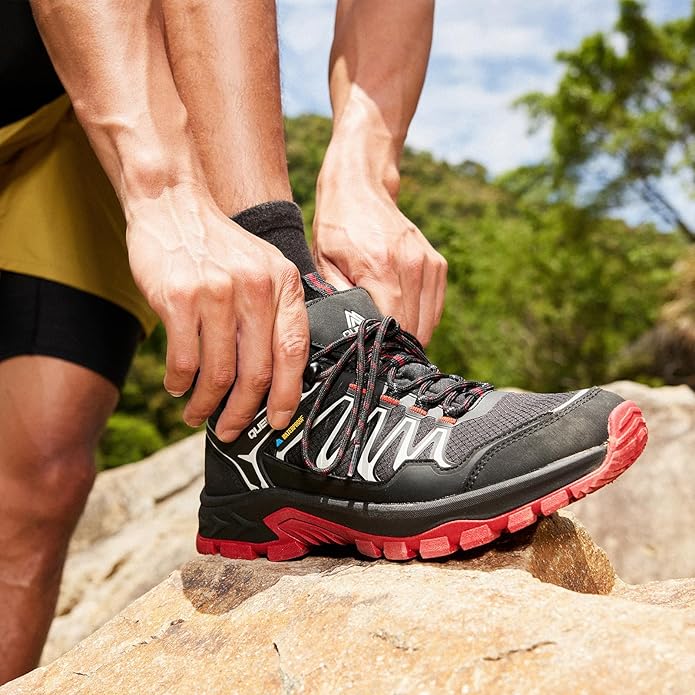 Queday Mens Waterproof Hiking Shoes Lightweight Outdoor Walking Shoes Breathable Hike Trekking Trails Camping Climbing