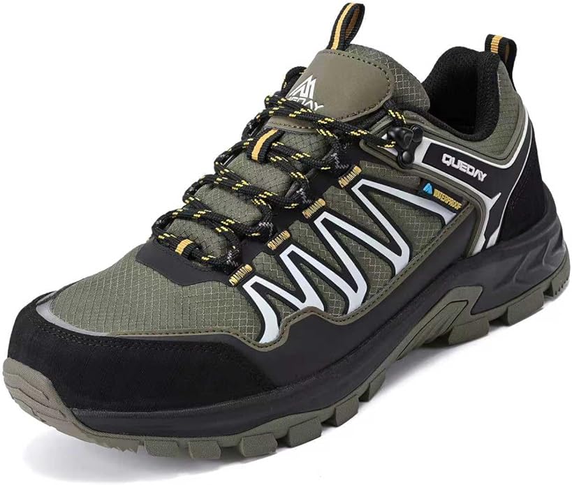 Queday Mens Waterproof Hiking Shoes Lightweight Outdoor Walking Shoes Breathable Hike Trekking Trails Camping Climbing