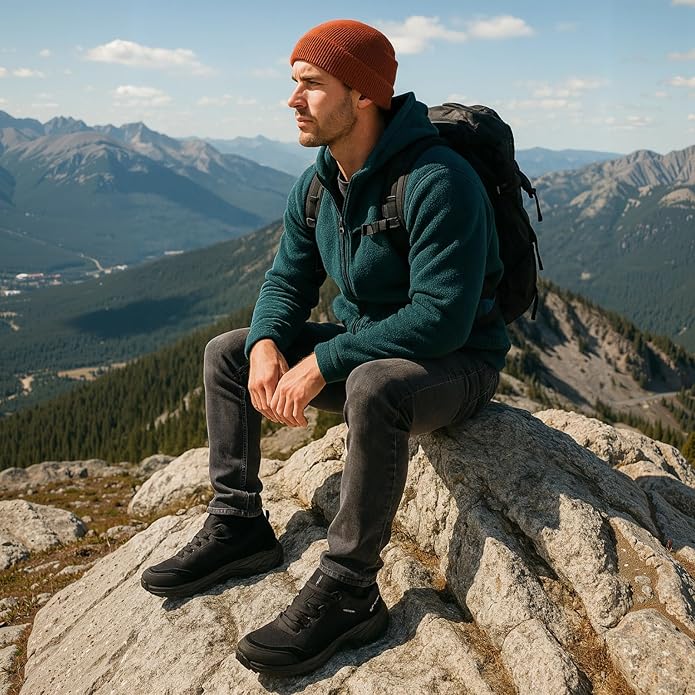 - Comfortable Fit: The HI-POLY insole with arch support is breathable, moisture-proof, high bounce arch-support, shock-resistant and lightweight. You can walk, running, jogging, hiking and trekking all day long in these Shoes. These men's hiking shoes provide superior cushioning and help reduce foot fatigue, ideal for all-day wear during light outdoor hikes, urban exploration, or daily walks.