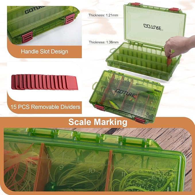 - 4 x 3600 Tackle Trays with Scale: The adjustable dividers offer flexibility, allowing you to load your utility case with plastic baits, terminal tackle, beads, or small items. The clear design allows visibility while the thick structure and secure latches ensure your gear stays firmly in place. A built-in surface length scale on the lid makes these terminal tackle boxes easy to arrange your bait and select the right combination of fishing gear while on the water