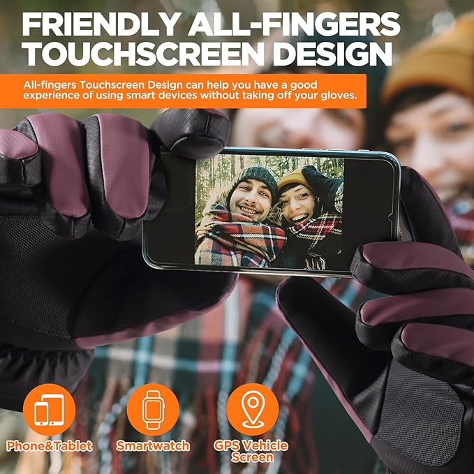 - 【Sensitive Touchscreen】Our womens and mens gloves both feature a highly sensitive touch screen function, all fingers made of sensitive conductive fabrics. You can easily operate your phone without taking off the thermal gloves, allowing you to stay connected and productive. It is great for phone use, like answering calls or texting, or for working with devices. These phone gloves will be a perfect fit for walking dog, jogging, delivery, skiing, snowmobiling, snowboarding, hunting or camping.