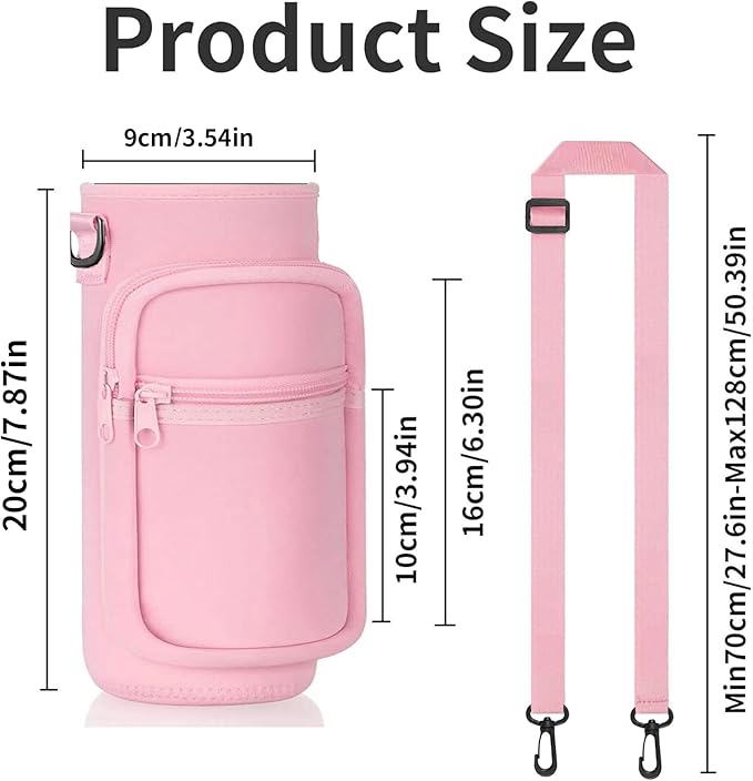 - Fit Most Water Bottles: Our water bottle carrier bag has Diameter 3.54" Height 7.87",suitable for most 25 oz 32 oz water bottles,helping you carry the water bottle with you. It can greatly free up your hands and is your ideal outdoor water bottle accessory