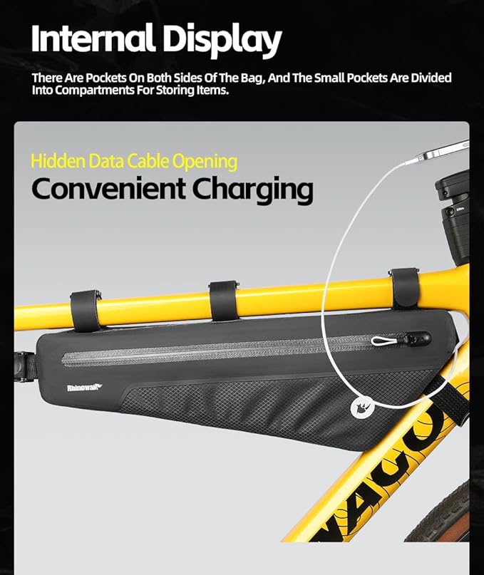 Rhinowalk Bike Triangle Frame Bag Waterproof IPX4 Slim Fit Cycling Storage Pouch for MTB & Road Bikes (Size 2.6L)