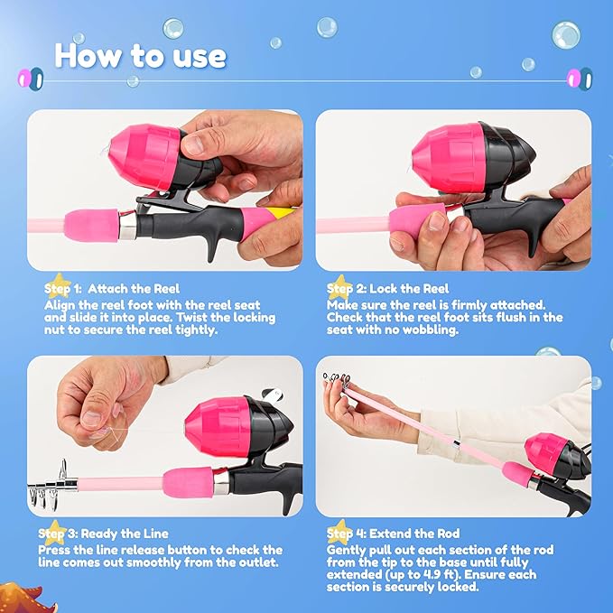 - Portable Telescopic Rod: Portable Fishing Rod shrinks to 1.1ft, lightweight and easy to carry in kids tackle box or travel bag, making it the perfect fishing gear for kids ages 3-5, 5-10 and youth fishing poles for camping or family trips