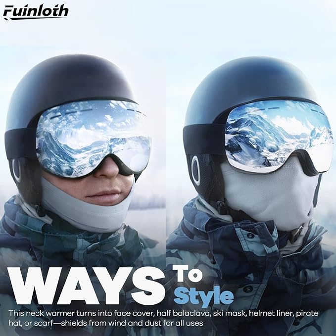 - 【Versatile Wear】This neck warmer offers versatile wearing styles, convertible to a face cover, half balaclava, ski mask, skiing helmet liner, pirate hat, or scarf—providing wind, dust, and sun protection across scenarios