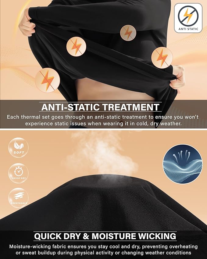 - Midweight thermal long underwear set for men, crafted from lightweight microfleece (not a bulky base layer), which will keep you snug and warm also to retain body warm, no matter what moderately cold-weather activities you’re undertaking, such hiking, running, and skiing. All thermal sets are adopted antistatic processing -Say good bye to static in cold and dry weather.