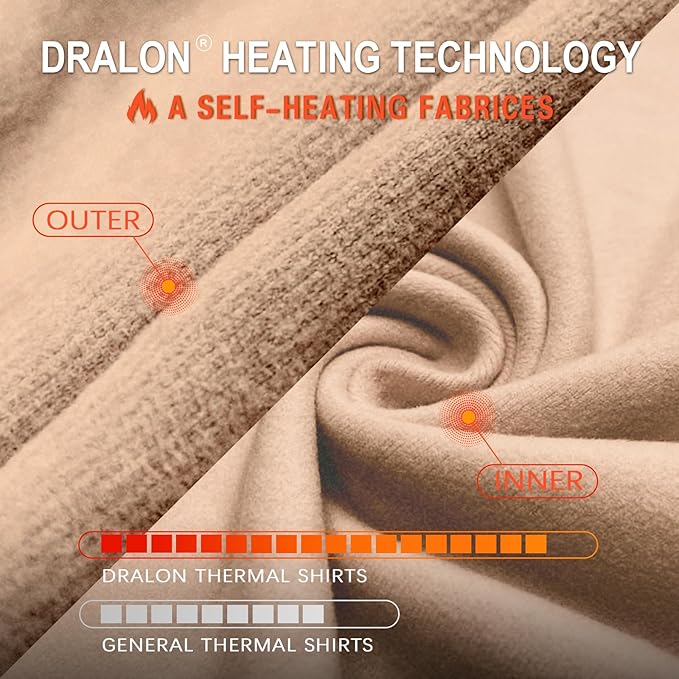 - 【ULTRA SOFT & COMFY DRALON FLEECE SHIRT】 WOWENY thermal underwear top for women is designed for advanced coverage and extra comfort. Made of 90% polyester & 10% spandex blend skin-touch fabric, this thermal base layer is super soft and breathable, evaporates moisture and provides comfortable wearing experience