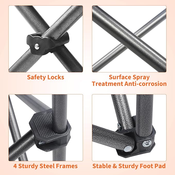 - Durable and Sturdy: Built to last, these camping chairs can support up to 400 lbs, thanks to their heavy-duty steel frame construction. Whether you're relaxing at the beach, fishing by the lake, or hiking in the mountains, these chairs provide the strength and stability you need for a comfortable experience.