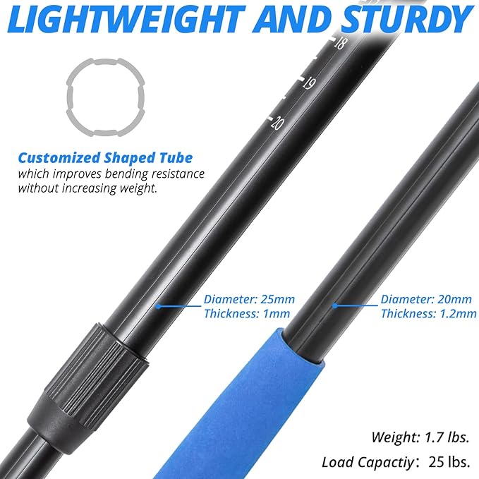- 🎣【Strong Aluminum Alloy Build】 Crafted with 6063-grade aluminum alloy, this landing net features a 1mm thick handle and a reinforced 1.2mm extension section. Built to resist bending and rust, it's designed to land bass, trout, and other heavy fish without warping or breaking under pressure. The premium aluminum build keeps the net surprisingly light(2.1 pounds), reducing fatigue during long sessions.