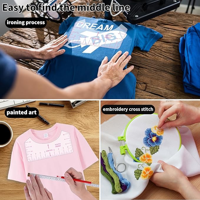 - 🌟【Wide Application】Great accessories tools for Cricut heat press, sublimation, screen printing, iron on vinyl, siser htv vinyl press, shirt printing and others. It can be used as a sewing and cutting ruler for clothes. Bring you much handmade convenience. Not only applicable in home sewing but also works well in business usages. Ideal gifts for tailors, sewing projects lovers.