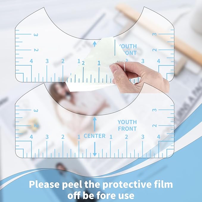 - 📏【T-Shirt Alignment Tool Set 】T shirt ruler guide include 8pcs different sizes rulers, the size are: Adult: 10"x 4" / Youth: 10"x 3.5" / V-neck: 10"x 4" / Children:10"x 2.5". Both includ front and back rulers. Help you to make alignments and save time on center your designs.