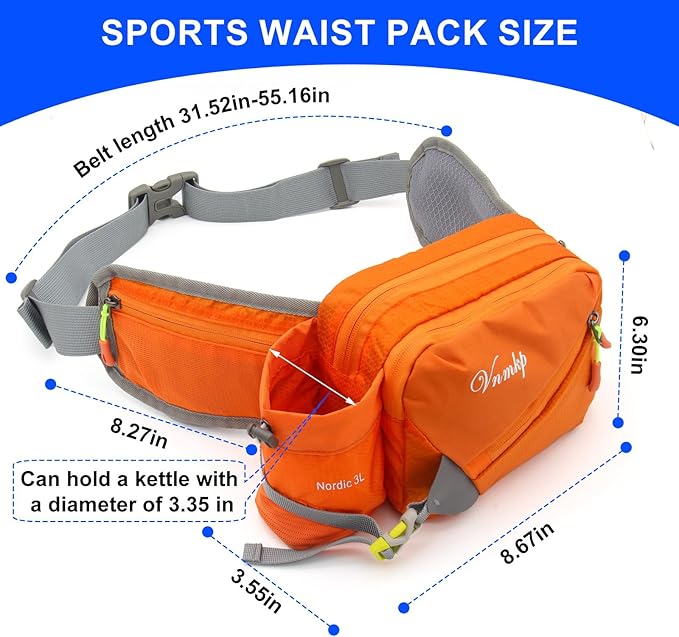 - The waist pack is an essential outdoor companion: this hiking water bottle waist pack is lightweight yet spacious, accommodating everything from daily essentials (keys, phone) to outdoor gear (first aid kit, snacks, camera), making it ideal for rock climbing, running, hiking, cycling, camping, fishing, and other outdoor activities. Featuring a minimalist design and neutral style, paired with ergonomic adjustable straps, this hiking water bottle waist pack accommodates various body types.
