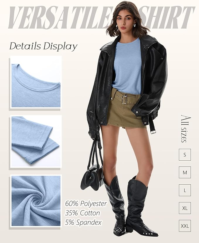 - Feature: Our women's long sleeve cotton shirts feature crew neck design, skin-friendly, casual and comfortable; Women's basic long sleeves are nice for shopping, home, street, dating, sport and so on