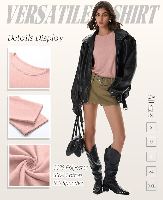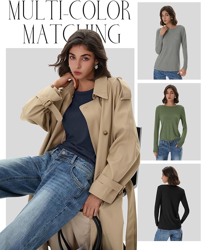 - Feature: Our women's long sleeve cotton shirts feature crew neck design, skin-friendly, casual and comfortable; Women's basic long sleeves are nice for shopping, home, street, dating, sport and so on