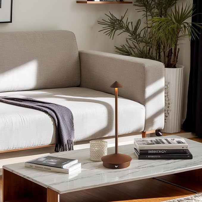 - 【Portable Cordless Lamp , Free from Wires】The simple cordless design bids farewell to the trouble of tangled wires. You can move it to any place where it is needed. Moreover, it has a stylish, simple, flexible shape and takes up little space. It is very suitable for use during reading, working, studying or resting, and can be placed in places such as dining tables, bedrooms, living rooms, bedside, terraces, bars, and camping sites. It is suitable for matching with various styles of home decorations.