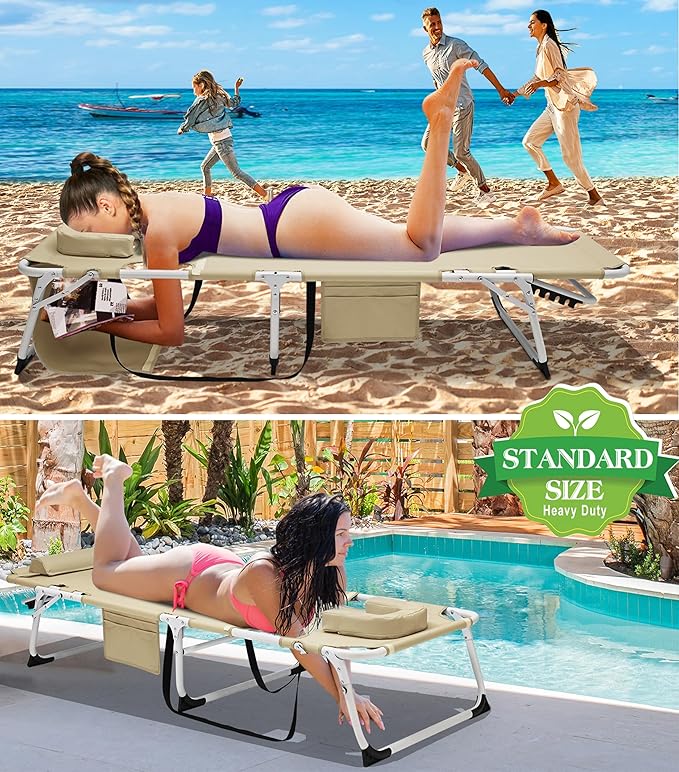 - Versatile Functionality: Can be used as a lounge cot for sunbathing; suitable for indoor and outdoor activities like camping, hiking, or fishing