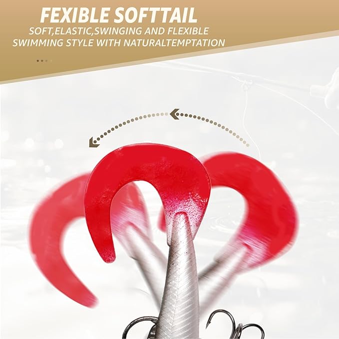 Inmorven Soft Fishing Lures Shad Minnow Swimbaits, Pre-Rigged Jig Head Paddle Tail Swimbaits for Freshwater and Saltwater, Jigs Fishing Bait for Bass Crappie Trout Walleye, Fishing Gifts for Men