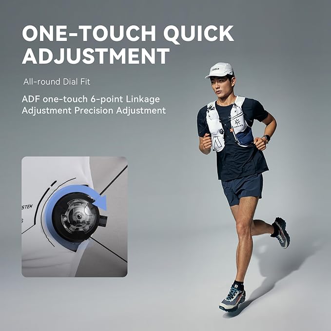 - ADF SYSTEM: The All-round Dial Fit system is designed to use one-button all-dimensional precise adjustment and fixed-point rail rope guidance, which can adjust the tightness according to different body shapes. This flexible and snug design allows athletes to quickly adjust at any time during exercise, breathing freely and moving without restraint
