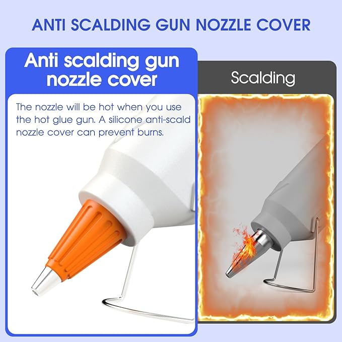 - 【Anti-drip and Heat Resistant】: Thermal Insulated Cap on hot glue gun is covered by heat-resistant rubber to prevent burns. Anti-drip nozzle releases glue smoothly with no drips or glops and is easy to control and place a small amount of glue.