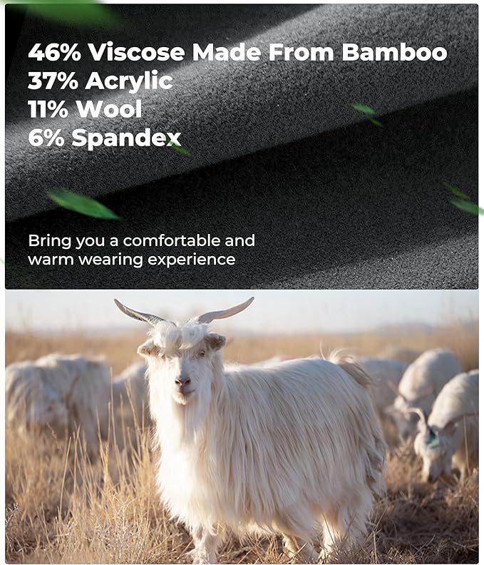 - Fabric type : 46% Viscose Made From Bamboo 37% Acrylic 11% Wool 6% Spandex