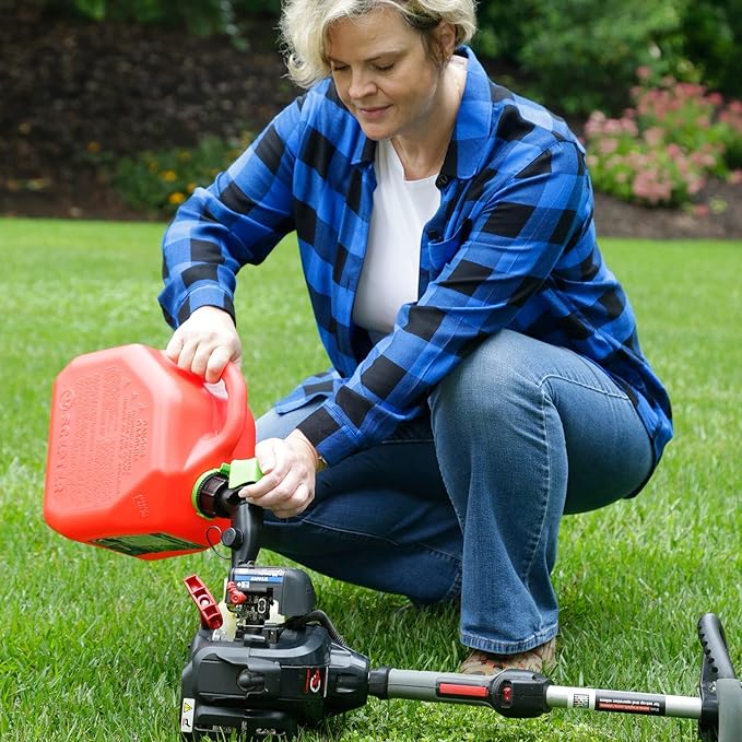 - EASY TO POUR GAS CAN – 2-gallon fuel container for easy refilling of lawnmowers, chainsaws, yard tools, recreational vehicles, ATVs, motorcycles, and other gas-powered equipment
